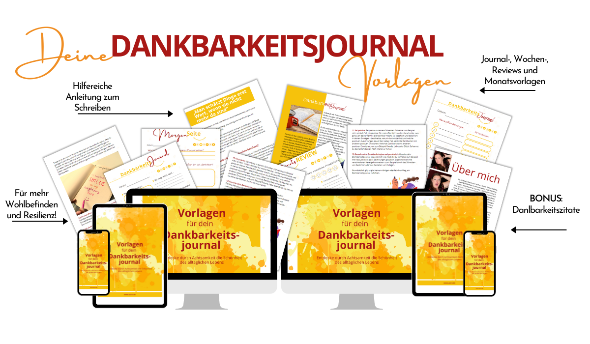 Hol dir jetzt deine Dankbarkeitsjournal Vorlagen und beginne noch heute, dein Leben zu verändern.